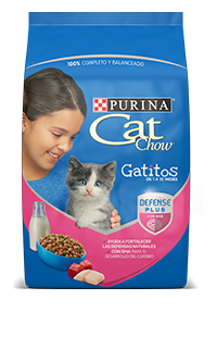 El nuevo PURINA® CAT CHOW® GATITOS DE 1 A 12 MESES, ofrece los nutrientes que tu gatito necesita para un crecimiento sano durante su primer año de vida. Contiene DHA que ayuda a desarrollar su cerebro.