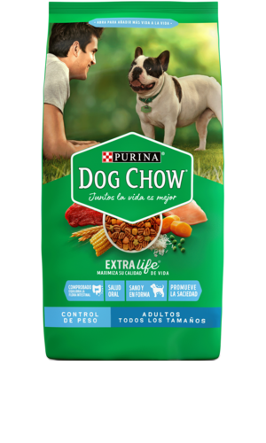 Una taza de alimento PURINA® DOG CHOW® Adultos Control de Peso Todos los tamaños, contiene aproximadamente 90 g (usando una taza estándar de té - 200 ml - como taza de medida). Las cantidades pueden variar de acuerdo con las condiciones ambientales, tamaño, actividad y apetito del perro.