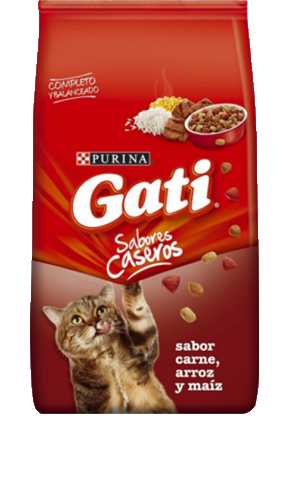 El nuevo GATI SABORES CASEROS CARNE, ARROZ Y MAIZ ofrece los nutrientes que tu gato necesita para mantenerse fuerte y saludable. Su fórmula contiene entre sus ingredientes proteínas de la carne, naturalmente ricas en hierro, que lo ayudan a desarrollar músculos fuertes