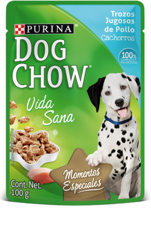 Los perros cachorros necesitan cerca de un sobre de 100 g por cada 0,7 a 0,9 kg de peso corporal al día, repartido en 2 o más comidas. Puedes mezclarlo con alimentos secos para cachorros, pero la cantidad de alimento seco debe ser ajustada para mantenerlo en una condición corporal ideal. Un sobre reemplazará aproximadamente 1/3 taza (de 200 ml) que equivale aproximadamente a 30 g de DOG CHOW® Cachorros seco.