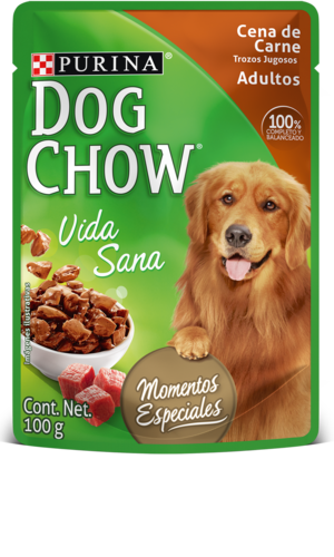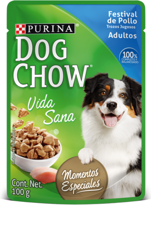 Los perros adultos necesitan cerca de un sobre de 100 g por cada 1,6 a 1,8 kg de peso corporal al día, repartido en 2 o más comidas. Puedes mezclarlo con alimentos secos, pero la cantidad de alimento seco debe ser ajustada para mantenerlo en una condición corporal ideal. Un sobre reemplazará aproximadamente 1/3 taza (de 200 ml) que equivale aproximadamente a 30 g de DOG CHOW® seco.